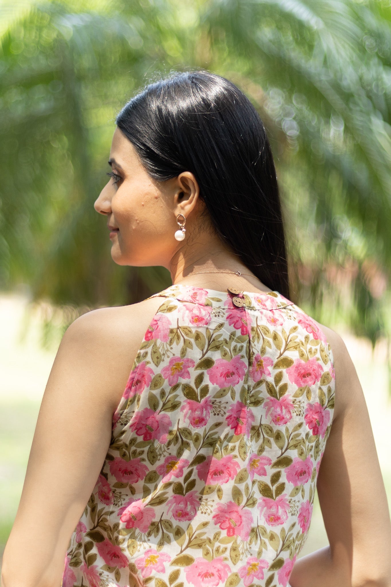 100% pure cotton Pink Rose Pure Cotton Halter Neck Set