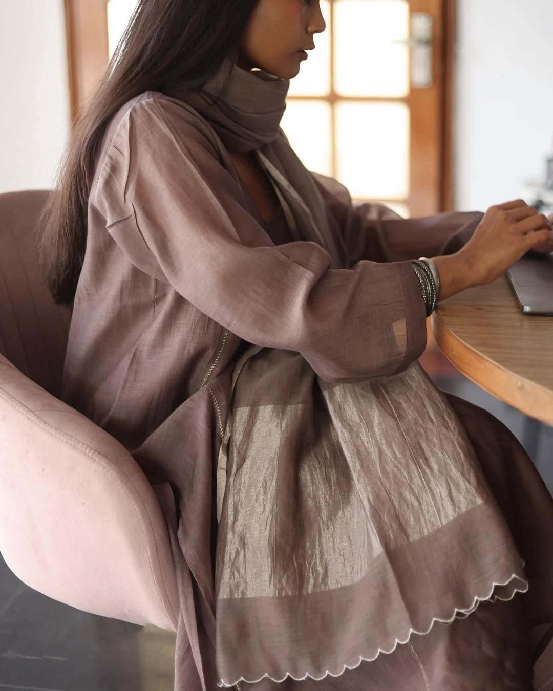 Back-to-basics with the wardrobe essential evergreen kurta in soft handwoven chanderi silk. The uniqueness of this kurta lies in its versatility to be paired several ways. The kurta is paired here with a matching farshi and chanderi dupatta to complete the look.
