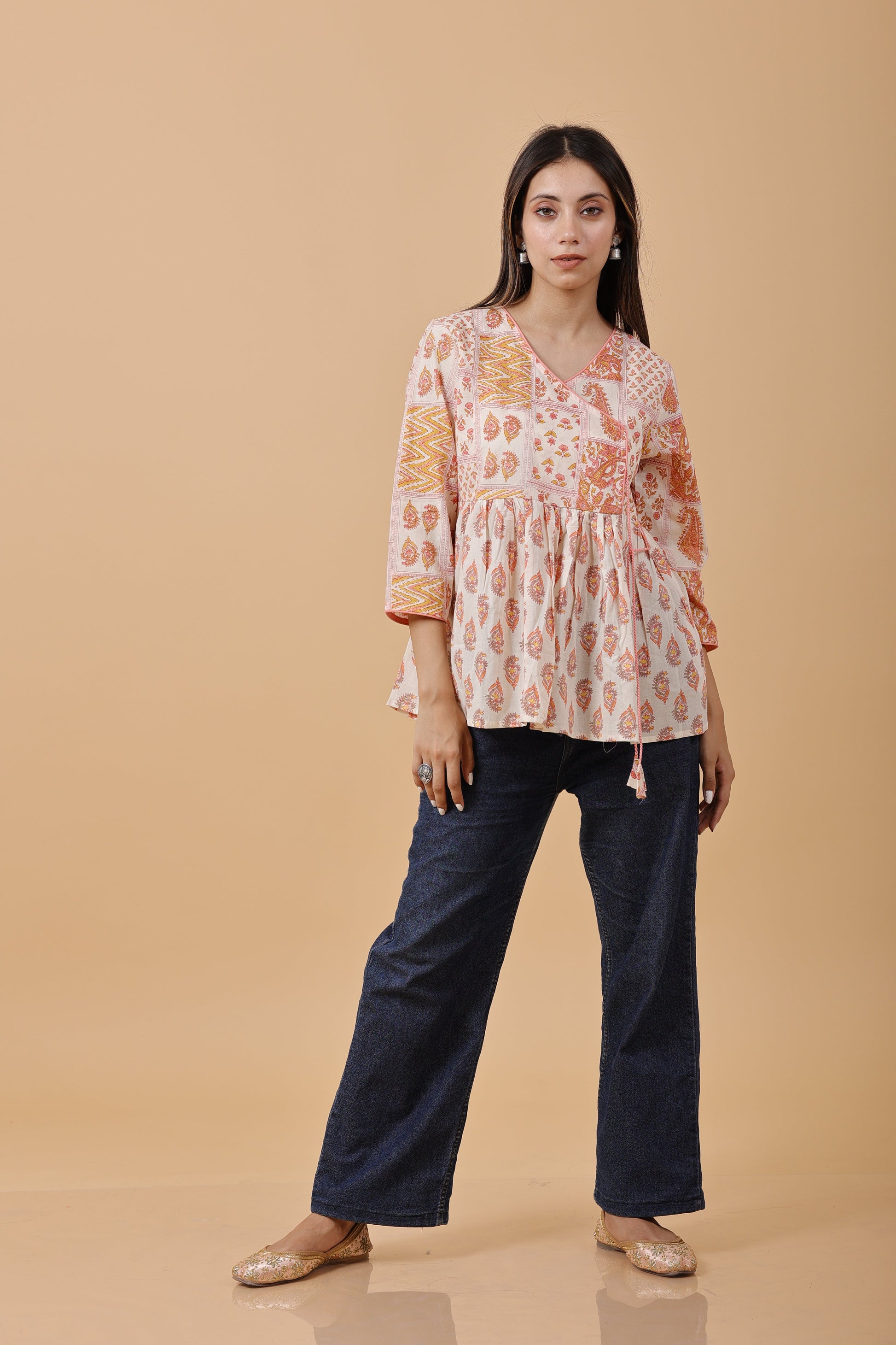 Butta Printed Aangrakha cotton Short Kurty/top