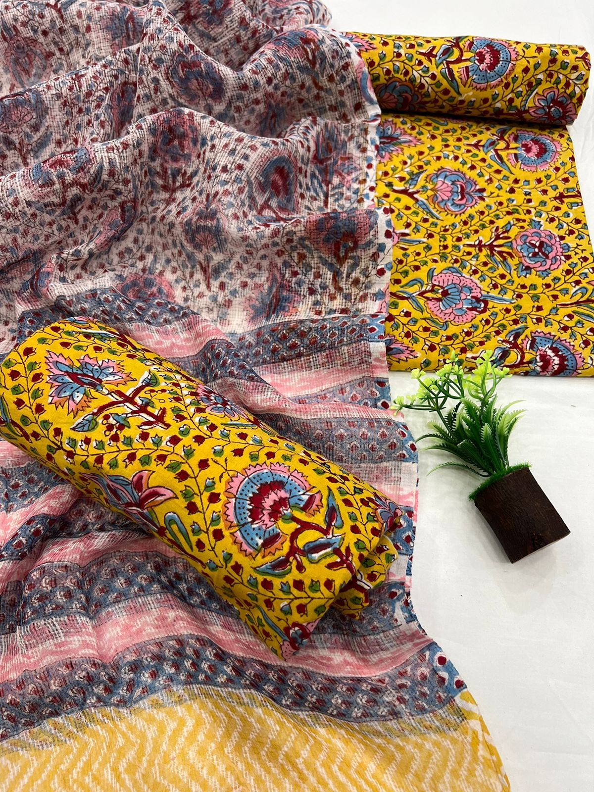 Exclusive Cotton Suit set with pure kota doriya Dupatta