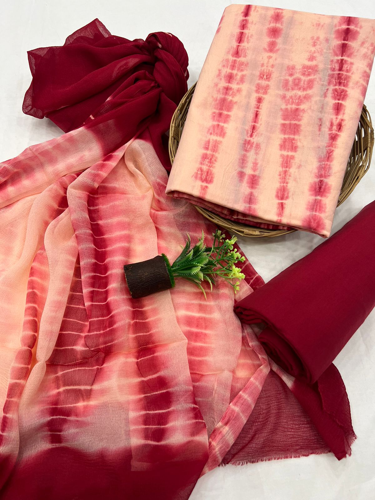 Tye And Dye Cotton Suit With Chiffon Dupatta