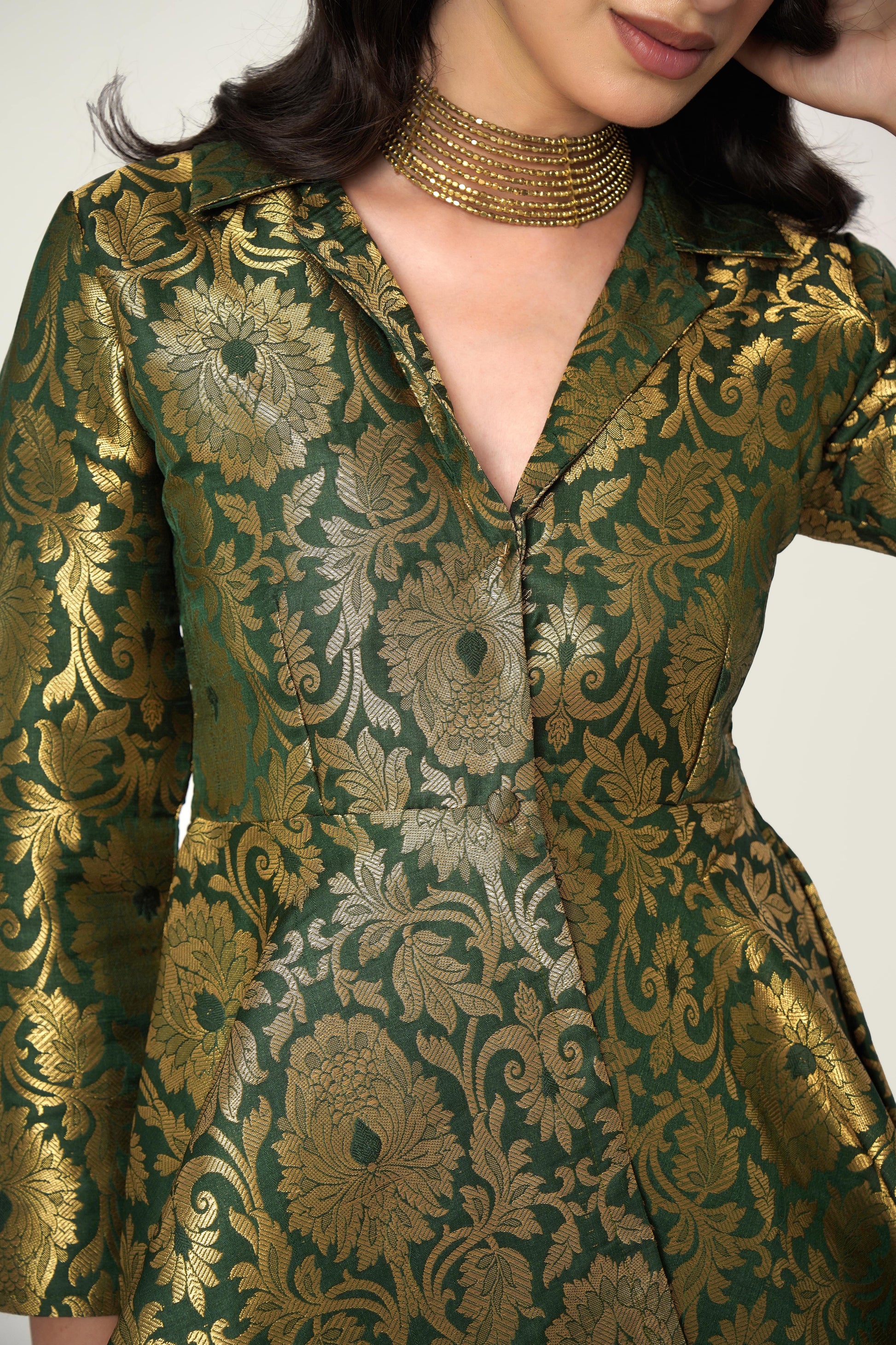 Fit: Structured yet flowy, this silhouette flatters all body types with its regal charm.