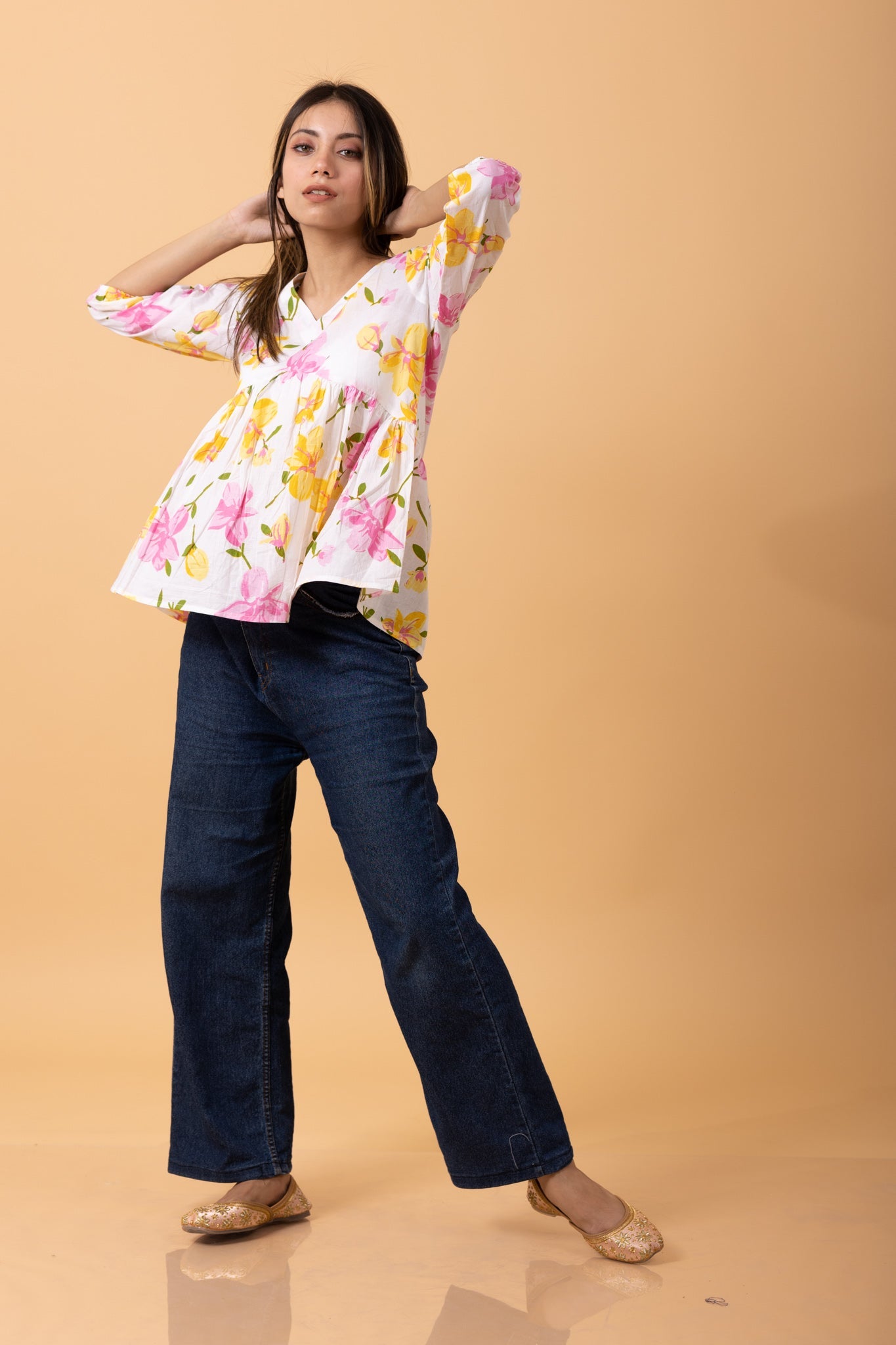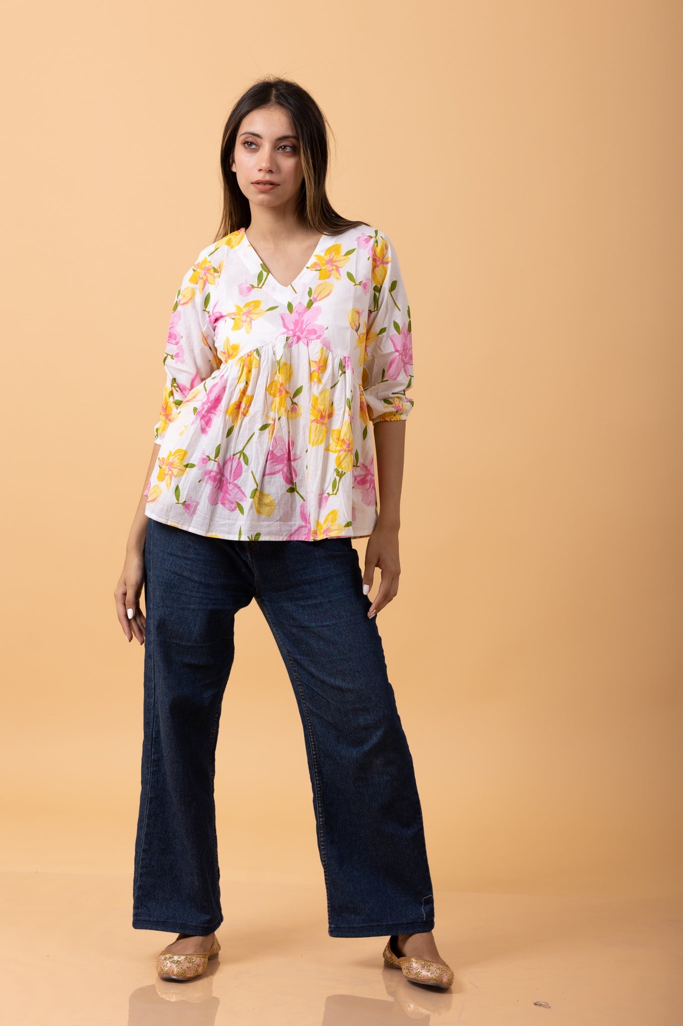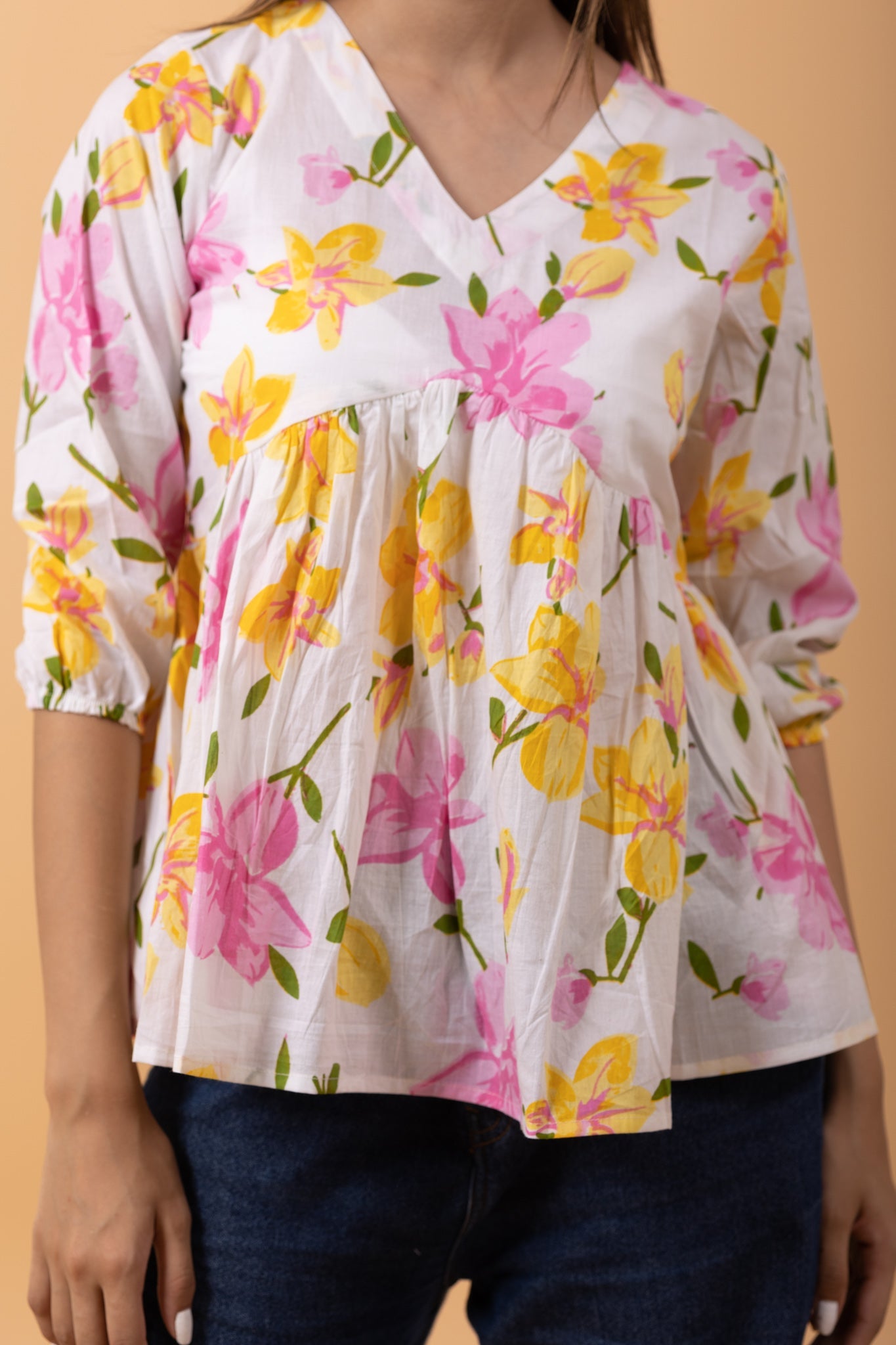 Floral 100%Cotton printed Short Kurti/top