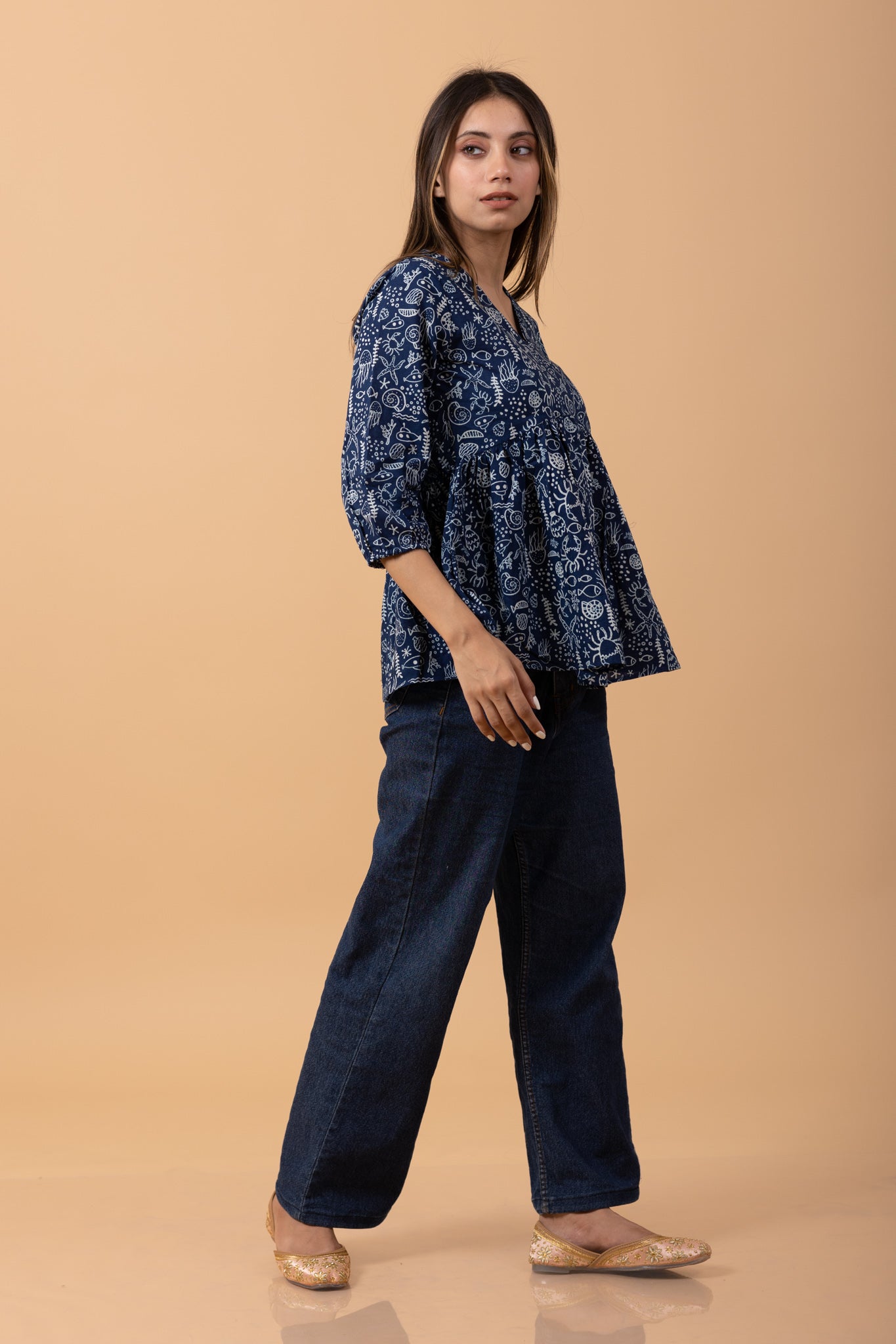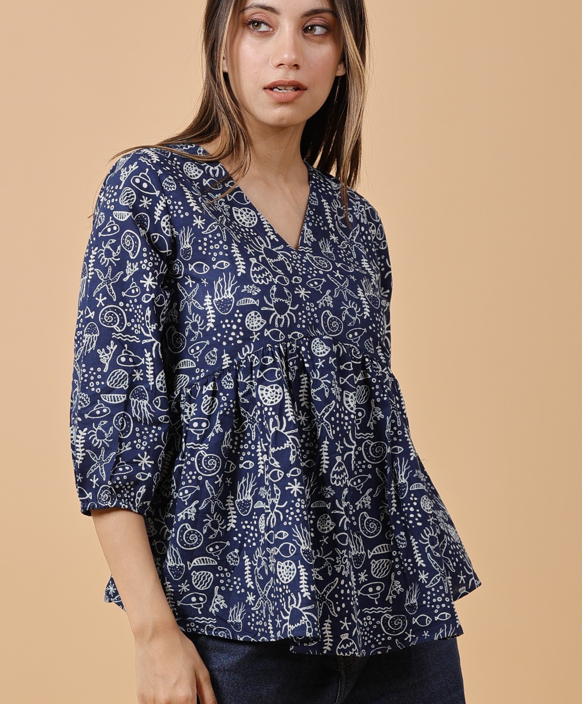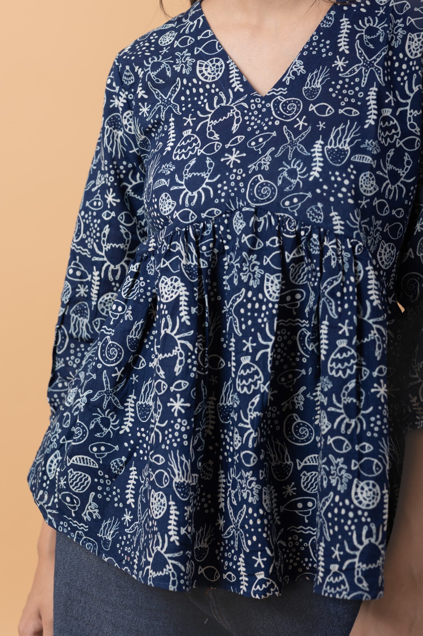 Indigo sea Creatures 100% Cotton Printed short kurti